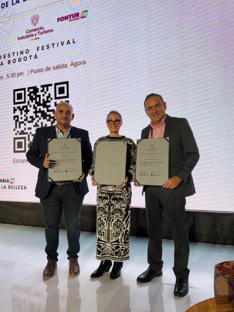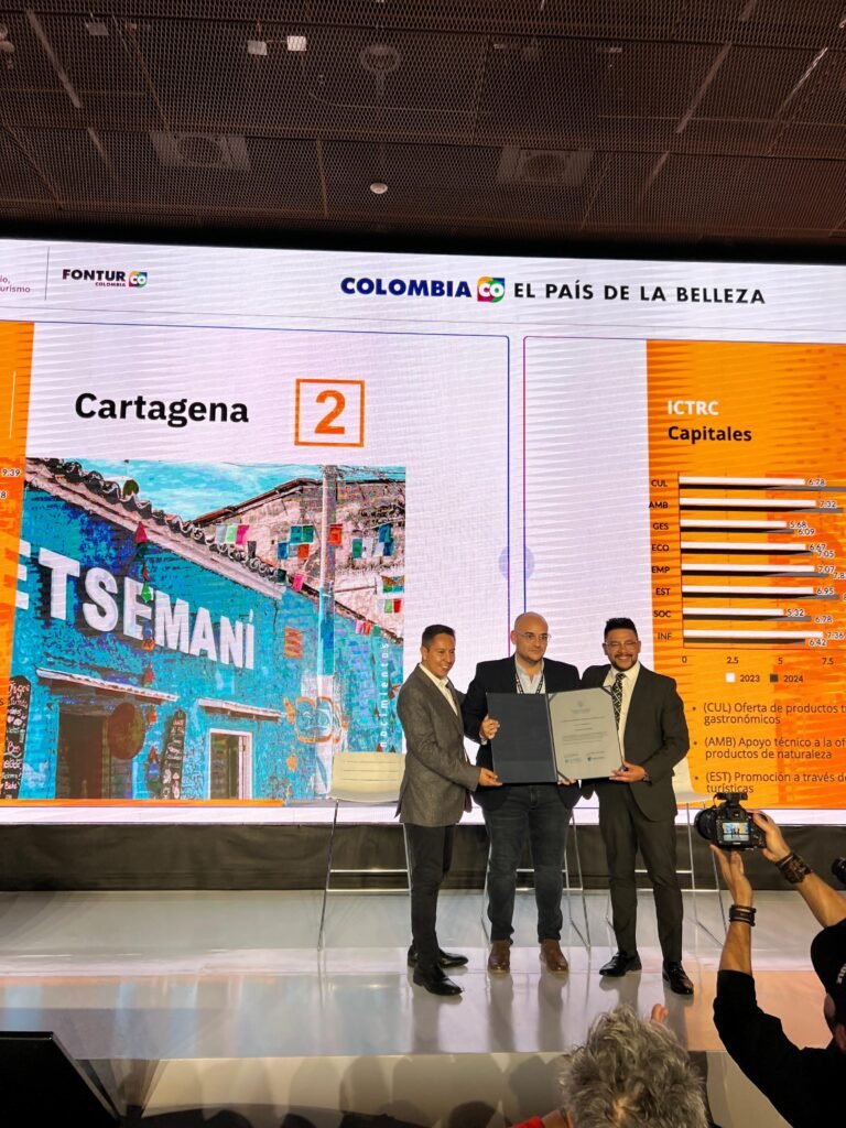 Dicho galardón fue recibido por Fernando Estupiñan, Gerente General de FONTUR, y Jhon Ramos, Director de Calidad y Desarrollo Sostenible MINTIC, quienes, en medio de la entrega, destacaron la ardua labor de la Alcaldía de #Cartagena para potenciar el turismo a nivel de competitividad y sostenibilidad.