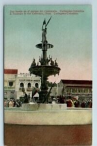 Uno de los secretos mejor guardados de Cartagena es la historia de la “Fuente Siria”, un regalo que la colonia sirio-libanesa ofreció a la ciudad en 1911 como muestra de gratitud por su acogida. Este imponente monumento, instalado en el Parque Centenario, destacaba por sus detalles orientales y su estructura de bronce. La fuente, coronada por una figura femenina y adornada con aves que representaban la milenaria cultura árabe, se convirtió rápidamente en uno de los íconos de la ciudad. La llegada de los primeros inmigrantes árabes a Colombia, principalmente cristianos y ortodoxos de Siria, Líbano y Palestina, dejó una huella profunda en la cultura local. Con la “Fuente Siria” celebraron el Centenario de la #Independencia de Cartagena, uniendo su identidad con la ciudad que les dio un hogar. Sin embargo, después de algunos años, la fuente desapareció sin dejar rastro, convirtiéndose en un enigma que ha perdurado a lo largo del tiempo. A lo largo de los años, han surgido diversas teorías sobre su desaparición: algunos piensan que fue removida por autoridades locales, otros creen que el material se deterioró y fue ocultado por vergüenza. También se especula que fue sustraída en una operación nocturna por los mismos miembros de la comunidad árabe. Hasta el día de hoy, no hay registros claros ni testimonios que aclaren el destino de este valioso monumento. La Fuente Siria sigue siendo una historia perdida en el tiempo, un vestigio de una época en la que la comunidad árabe transformaba el rostro de Cartagena. Aunque su paradero permanece desconocido, su memoria sigue viva en los relatos de aquellos que aún recuerdan su esplendor. Fuente. Cartagena A Capella. Fotos. A quien corresponda.
