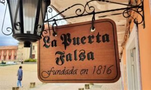 El restaurante La Puerta Falsa, nació de una pelea entre una mujer y el párroco de la Catedral Primada en Bogotá, hace poco más de 200 años. Desde entonces, han sido siete generaciones de una familia que guarda la receta de los tamales más famosos de Bogotá, del chocolate más santafereño que se hace en agua, de la changua más apetitosa, la agua de panela y los dulces más tradicionales del país, justo frente al templo, junto a la Casa del Florero de Llorente. ‘La puerta falsa’, el restaurante que, a la fecha, está abierto al público desde el 16 de julio de 1816, siendo así el establecimiento gastronómico más antiguo del país que se mantiene en funcionamiento. El restaurante recibe este nombre en honor a las puertas falsas del costado norte de la Catedral Primada de Colombia, abrió como un pequeño negocio de aguapanela en la colonial Santa fé de Bogotá, a pocos metros de la Plaza Mayor (hoy Plaza de Bolívar). Con el pasar de los años, lo que se convirtió en un lugar en donde la sociedad santafereña, entre gente de a pie y aristócratas criollos, iban a degustar algo después de misa, se convirtió en un punto de referencia y reunión para la gente, logrando así que, gracias al voz a voz, el local adoptaría el nombre de ‘La puerta falsa´.